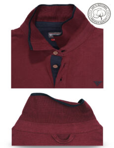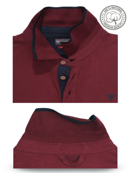 Πόλο μπλούζα μονόχρωμη μπορντό σε άνετη γραμμή από premium βαμβάκι πενιέ. Οι  ίνες του πενιέ βαμβακιού καθιστούν το ύφασμα μαλακό με μεταξένια υφή, βελτιωμένη ανθεκτικότητα και αυξημένη διάρκεια ζωής. Και έχει ένα υπέροχο απαλό άγγιγμα. Ύφανση φίνα από λεπτά νήματα, γιακάς ριπ δίχρωμος, μανίκι μακρύ με τελείωμα ριπ, ανοίγματα στις κάτω πλαϊνές ραφές στο εσωτερικό του ανοίγματος ραφή με ίντιγκο ύφασμα και πονταρισιά για μεγαλύτερη αντοχή με κομψή λεπτομέρεια, και το λογότυπο στο ύψος του στήθους. Μπορντό Μπλούζα Πόλο Μακρύ Μανίκι ανδρική Premium Quality Polo Regular fit